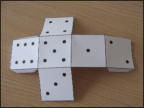 To make the pieces, cut out the "bear's chips".Then glue them on plastic bottle caps.If you don't have a dice, make one with the printed pattern. You'll have to toss it because it cannot roll ! ! !